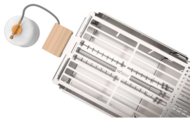 Esta innovación está lista para su uso inmediato y no necesita ser configurada. El tubo de combustión y los paneles radiantes se extienden automáticamente al separar la parrilla. Las rejillas de 2 zonas ajustables en altura para la carne y las verduras proporcionan una superficie de asado superior a la media. La temperatura óptima se alcanza tras sólo 2 minutos. Si es necesario, la unidad de combustión se puede retirar para asar con madera o carbón.