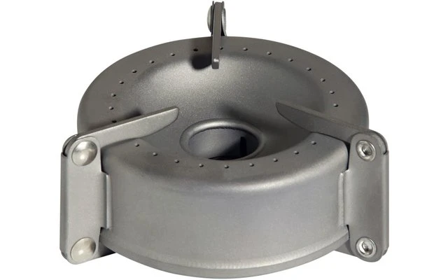 El hornillo arde durante unos 20 minutos con un solo llenado de alcohol. Para verter el alcohol restante en la botella, uno de los soportes de la olla sirve como dispositivo de goteo. Si la cocina se pone al revés, se puede cocinar con un cubo Esbit o con pasta de combustible. Inteligente hasta el último detalle y una auténtica cocina de exterior. Realmente pone una carga imperceptible en su equipaje y proporciona café fresco o agua caliente para su comida seca, no importa dónde.