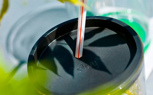 tapa de seda con hueco para la pajita para cerrar con seguridad los vasos magnéticos. Esto también evita que el líquido se derrame o gotee, lo que hace que el sistema Silwy sea perfecto.