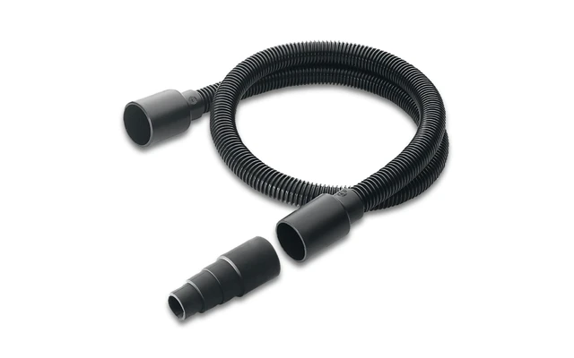 Manguera de aspiración flexible (1 m) con adaptador para la conexión a la toma de aire de escape de herramientas eléctricas como plantillas, amoladoras, taladros o cepillos eléctricos. La suciedad producida puede ser extraída directamente y no llega al aire de la habitación/ambiente. La solución ideal para un bricolaje limpio sin limpieza posterior.