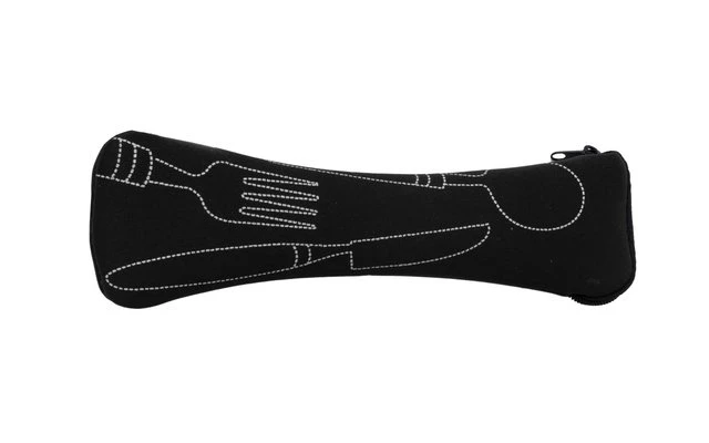 El juego de cubiertos muy ligero de Basic Nature consta de cuatro piezas: Tenedor, cuchillo, cuchara y cucharilla. Se pueden transportar cómodamente en la bolsa de neopreno de fácil limpieza