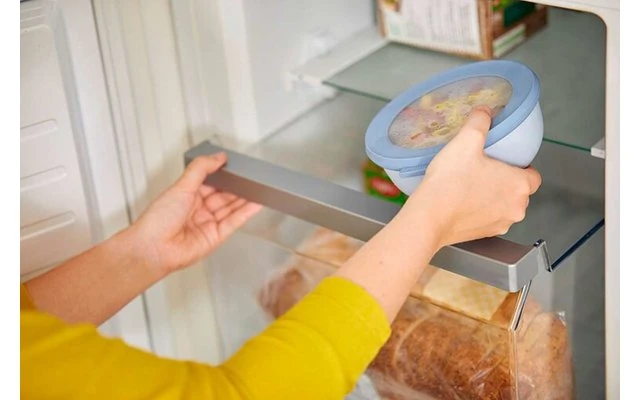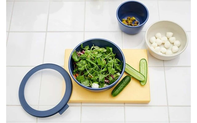 La innovadora tapa lisa también es hermética y a prueba de fugas. Así, los alimentos se mantienen frescos durante más tiempo y pueden almacenarse y transportarse perfectamente. Los cuencos Mepal Cirqula son prácticos y fáciles de almacenar. Con la tapa se pueden apilar ordenadamente unos encima de otros, sin la tapa se pueden apilar en diferentes tamaños para ahorrar espacio.