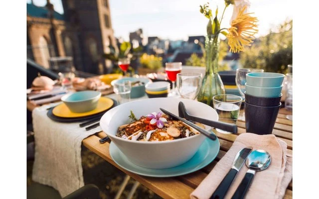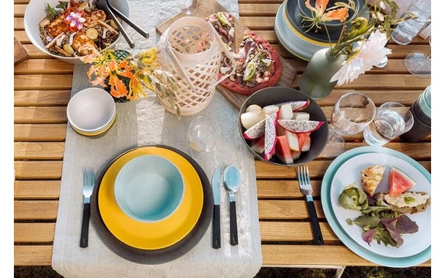 Y si el tiempo no acompaña: La taza Bloom también es perfecta para su uso en interiores Al igual que toda la serie de vajillas Bloom, la taza está disponible en seis atractivos colores que también pueden combinarse perfectamente entre sí.