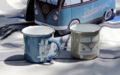 Colección VW T1 Bus Juego De Tazas De Esmalte 2 Piezas 350 Ml Verde / Rosa